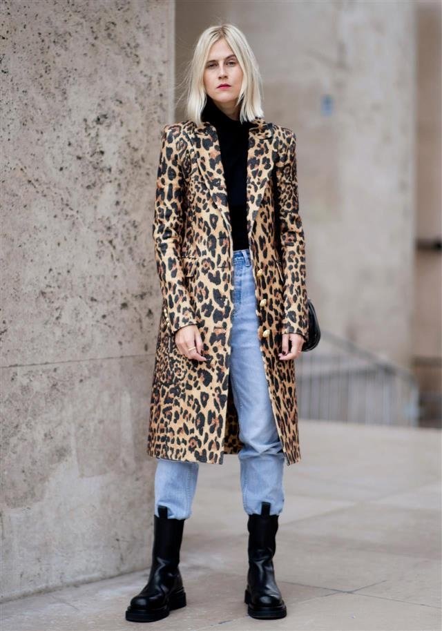 Если в вашем гардеробе есть такая яркая, оригинальная и трендовая вещь, как это пальто с леопардовым принтом, то сочетайте его с простыми и сдержанными вещами. Например, вам точно понадобится черный свитер и джинсы на высокой талии.