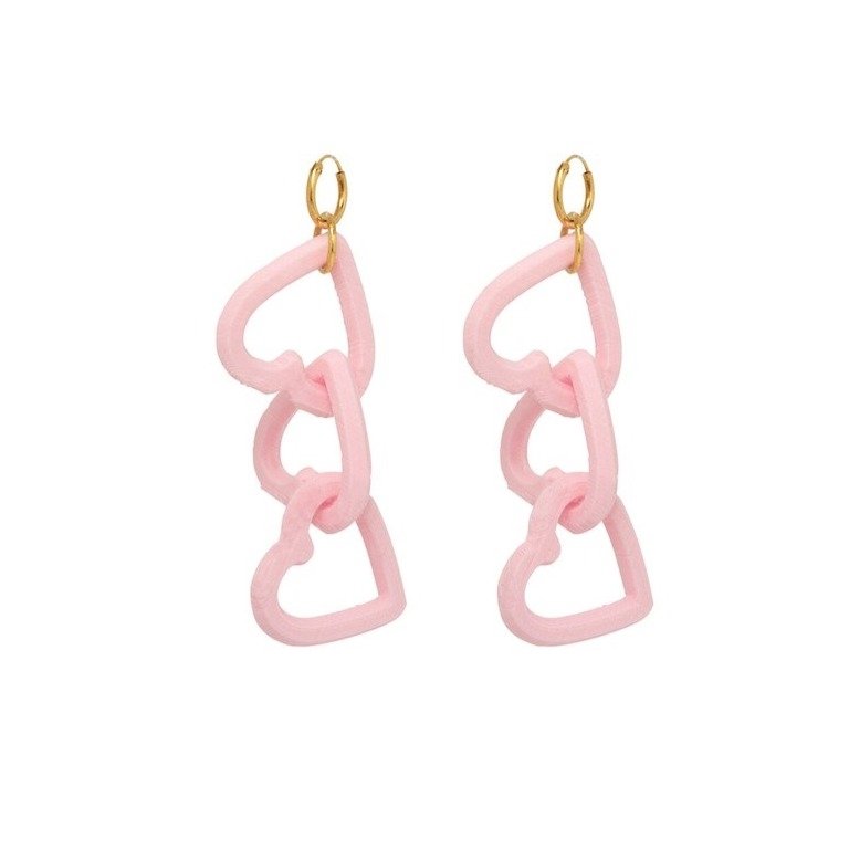 Любые аксессуары, напоминающие цепи – тренд всего 2020 года. Брутальность в моде, что и доказали показы знаменитых брендов. Однако не нужно воспринимать цепи только как тяжелый, строгий аксессуар. Вот такие серьги розового цвета из органического материала – идеальный вариант для нежных девушек. Вы легко найдете подобные серьги в любом магазине аксессуаров.