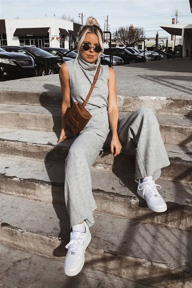 Одна из самых популярных комбинаций в последнее время. Кроссовки делают этот наряд очень стильным. Женственно, нежно, практично и удобно.