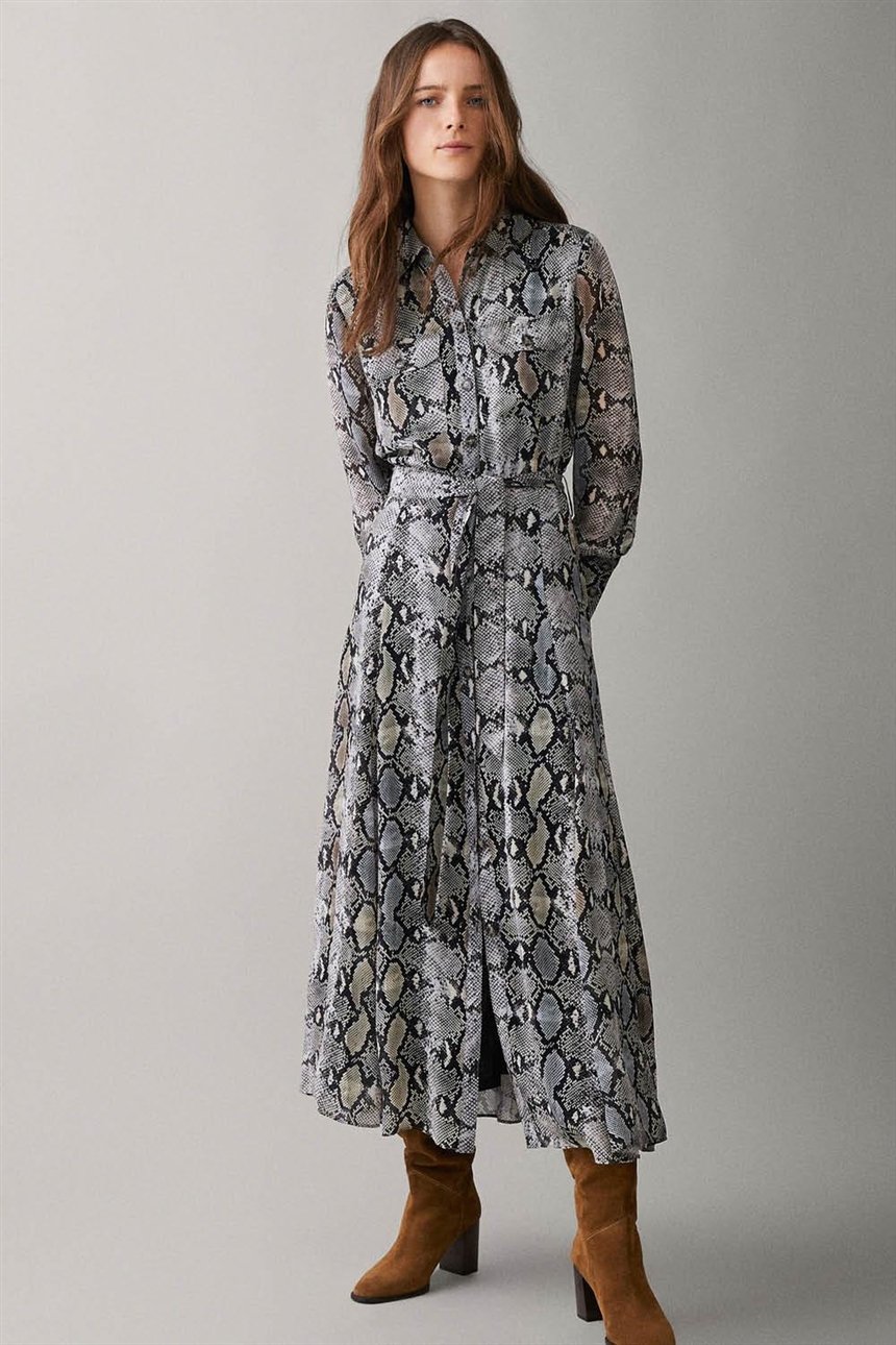 Принт змеи будет очень популярным в этом сезоне. Кроме того, этот фасон украшает любую фигуру. Пояс подчеркнет талию и сделает вас стройнее.