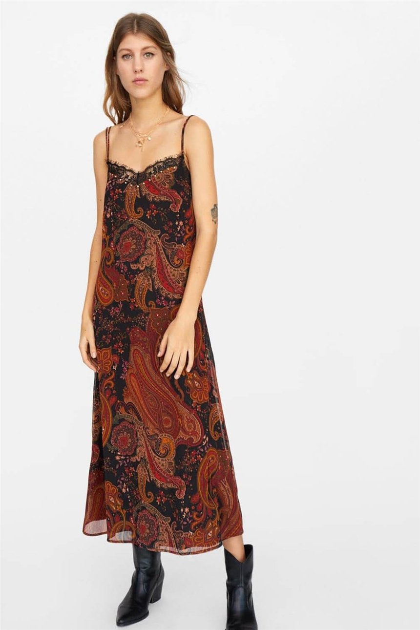 Платья в бельевом стиле уже давно стали трендом. Так что даже не сомневайтесь в его актуальности! Тем более такая модель скроет все недостатки вашей фигуры. Посмотрите на это платье-комбинацию в стиле бохо. Элегантно и стильно!
