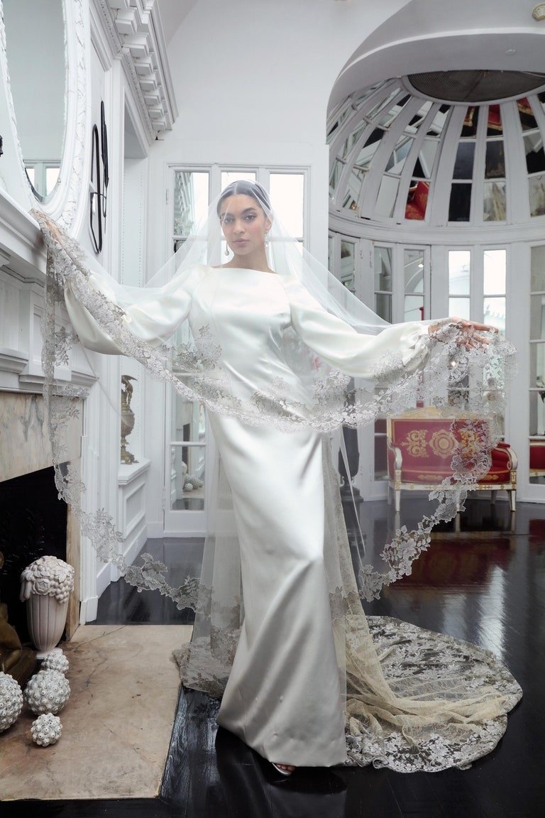Чтобы создать такой наряд, дизайнер вдохновилась статуей Девы Марии, а также образом ирландской актрисы Дороти Кросс.
