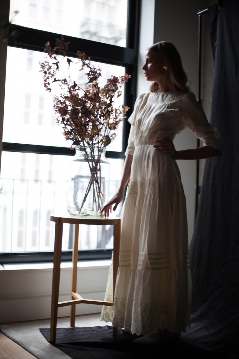 Нет ничего лучше, чем сочетание элегантного шелкового платья с длинной фатой с цветочной вышивкой. Наряд в стиле ретро от бренда Barbara Tfank