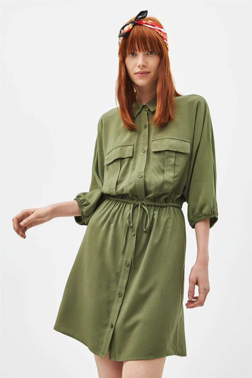 Достаточно удобный и стильный вариант оливкового цвета. Кроме того, такая модель относится к платьям, которые сделают вас визуально стройнее.