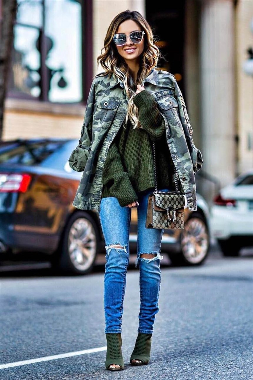 Эта тенденция не исчезала из мира моды, но в этом сезоне камуфляж становится особо популярным. Вещи с камуфляжным принтом обновляются и становятся целью уличного стиля. Вы представляете себя в стильном камуфляжном костюме? Нет? Тогда посмотрите на этот образ.