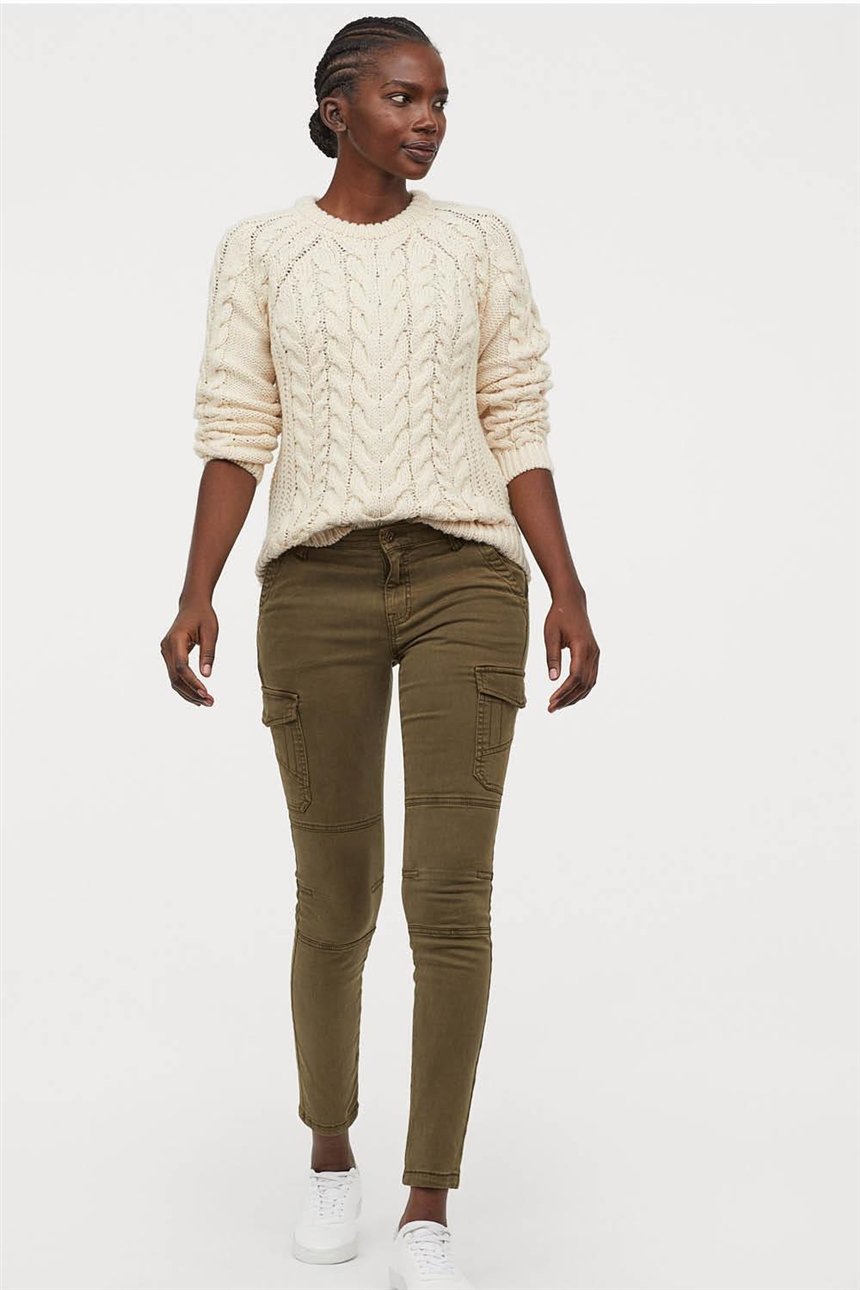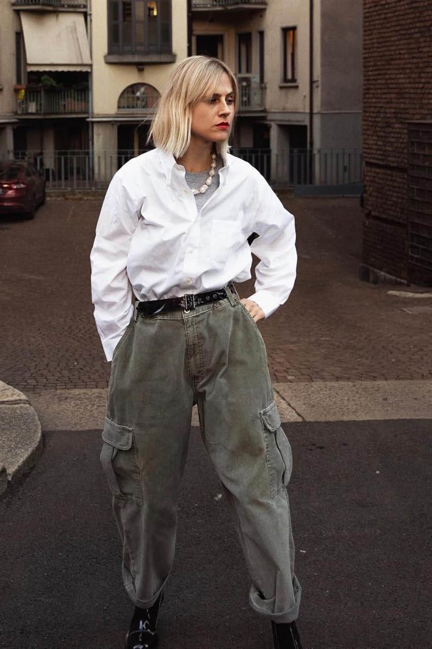 Она уже была в тренде несколько лет назад и возвращается снова. Если вы не любительница облегающий штанов, тем более в таком стиле, попробуйте традиционный вариант: бежевые свободные штаны с высокой талией в сочетании с белыми кроссовками и белой футболкой.