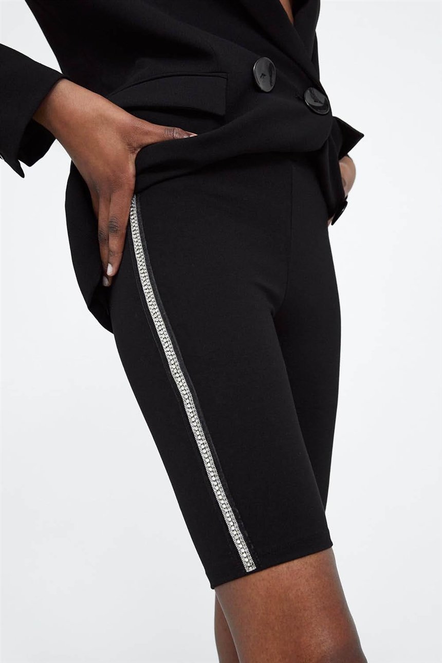 Самый интересный вариант из всех возможных. Вы можете сочетать их со стильным пиджаком или рубашкой. Может получиться интересный офисный образ. Нужен праздничный вариант? Тогда выбирайте лосины со стразами по бокам.