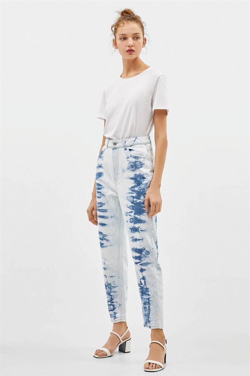 А что будет, если мы попробуем сочетать две "ужасные" тенденции в одной вещи? Посмотрите на этот образ: кислотные джинсы с принтом tie-dye.