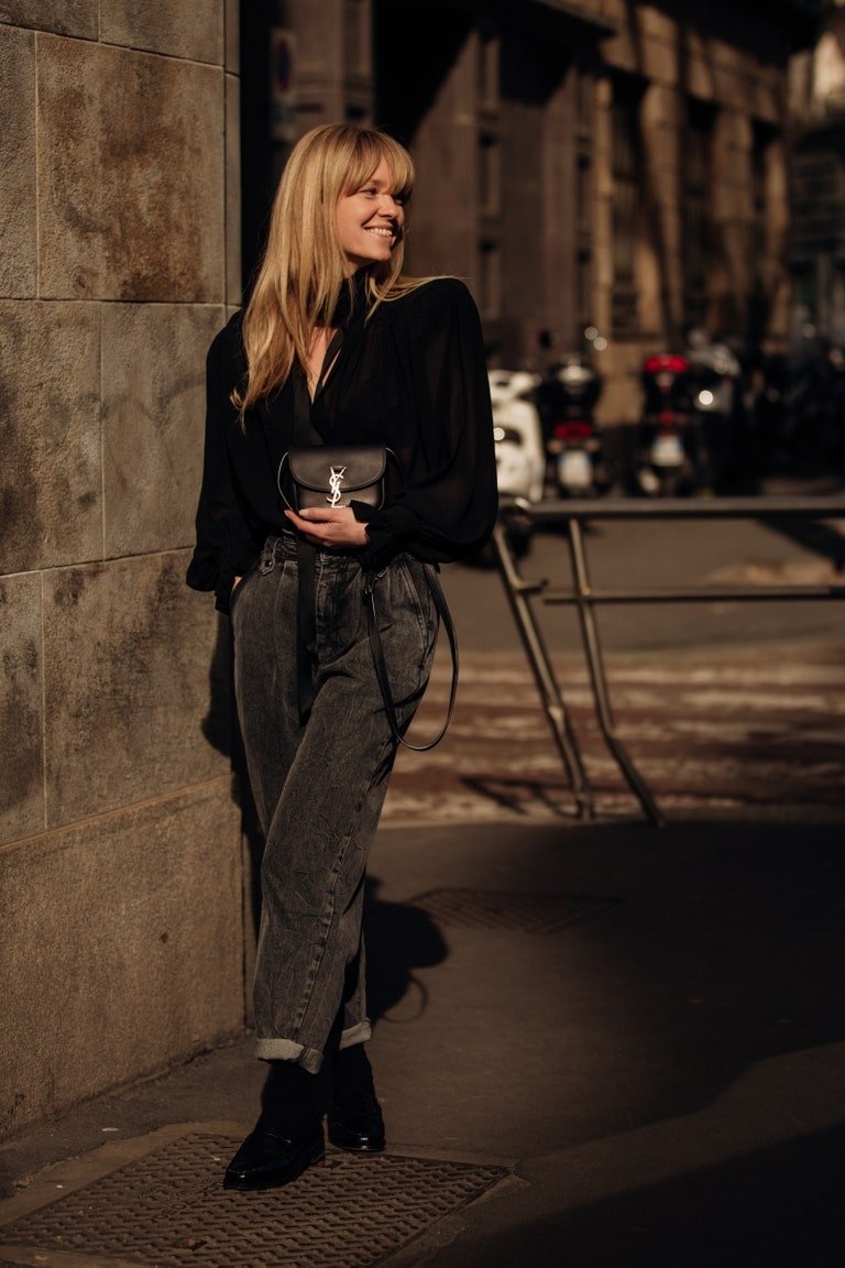 Спокойно, любительницы черного цвета, мы нашли для вас идеальный вариант. На этот раз мы вдохновились образом Джанет Мадсен, в котором она появилась на улицах Милана в период Недели моды. Это идеальный пример того, как нужно носить черные джинсы в весенний период. Как видите, можно легко создать элегантный образ, если сочетать шифоновую блузку, туфли, элегантную сумку и черные джинсы на высокой талии. Просто, стильно, удобно и красиво.
