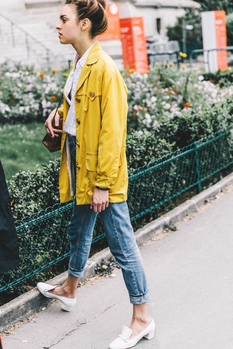 Белая рубашка, синие джинсы, элегантные белые туфли и… желтая куртка! Яркая парка классического кроя привнесет этот необходимый яркий акцент. Кто сказал, что правило "чем меньше, тем лучше" несовместимо с фактором неожиданности?!