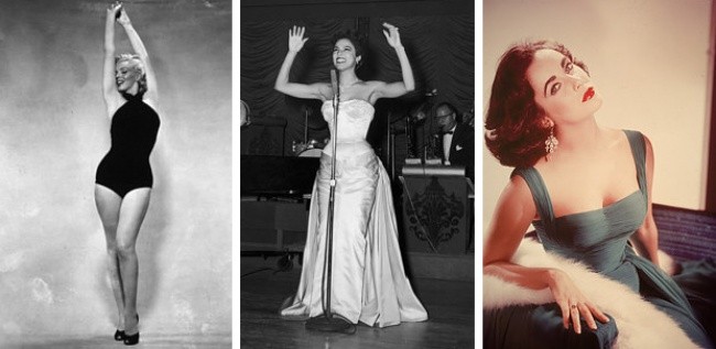 50-е – это эпоха женственности. После угловатых форм прошлого десятилетия, в моду возвращаются силуэт «песочные часы». Война закончилась, мужчины вернулись домой и скрытая за изящными формами сексуальность ценится превыше всего. Благодаря фильмам и журналам, которые рекламируют круглые бедра, тонкую талию и поднятую грудь, худощавые женщины начинают принимать биодобавки, чтобы нарастить себе сексуальные изгибы.