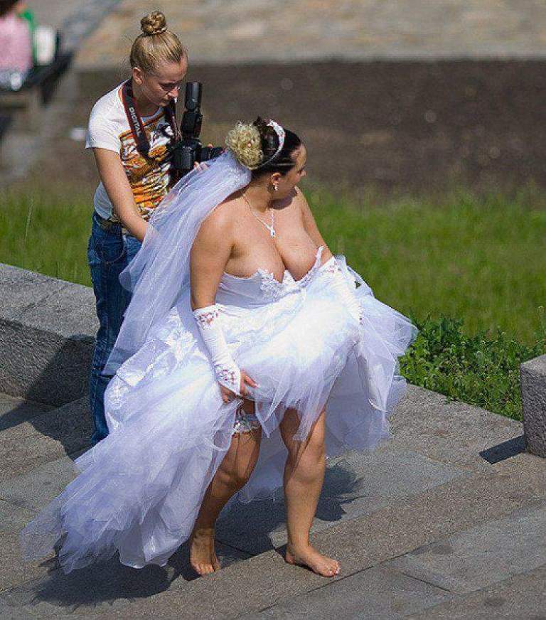 Такая фотосессия свадебных платьев может быть представлена как «что Не надевать на свадьбу».
