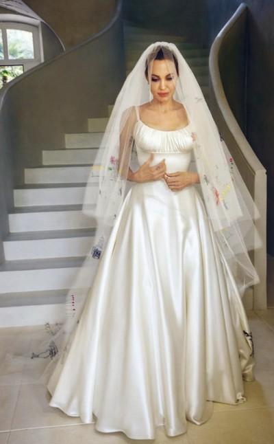 Мы не смогли обойти вниманием и Анджелину Джоли, которая неизменно следует своему стилю и прекрасному вкусу. Ее красивое свадебное платье выделялось своей простотой и элегантностью.