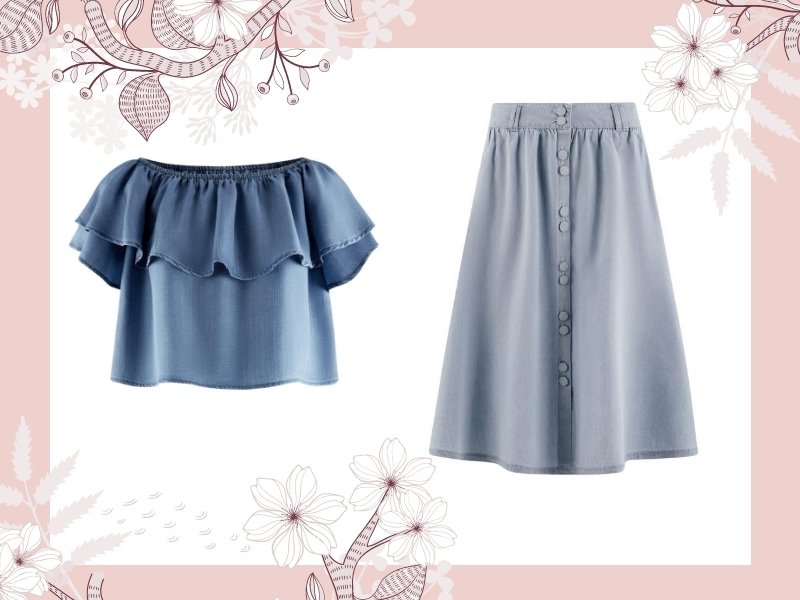 Если столь смелые сочетания вас смущают, то присмотритесь к нежным персиковым и розовым тонам. Строгая хлопковая рубашка с длинными рукавами защитит от солнца и компенсирует провокационное настроение разлетающейся на ветру мини-юбки.