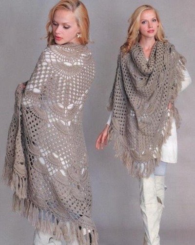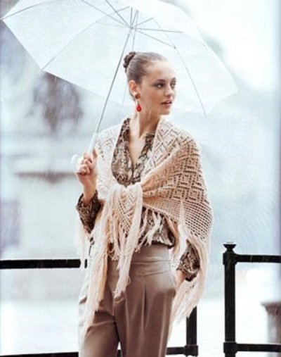 На первый взгляд, этот совет выглядит нелогичным. Но это только на первый взгляд. Определим функции изделия. С какой целью одевают шаль? Ответ находится на поверхности – утеплиться или придать изюминку своему образу, а порой и первое, и второе одновременно.Теперь поговорим об одежде, с которой будем это изделие носить. Обобщим пока что информацию до двух категорий: поверх верхней одежды или поверх костюма, платья и т.д.