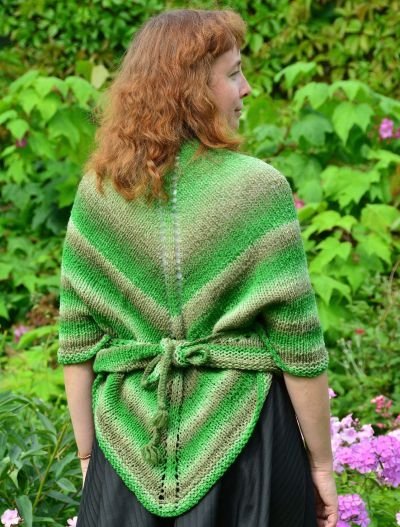 Ширина зависит от принципа завязывания. Самое большее значение ширины будет в том случае, если вы носите шаль, завязывая ее на спине. Таким образом, как показано на фото.