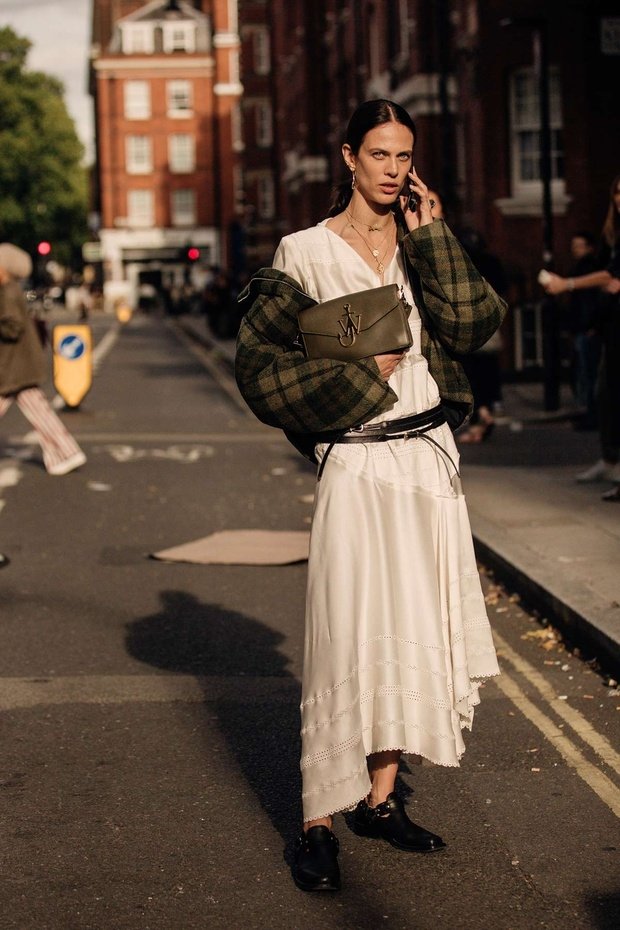 Вам подойдет платье…Которое на 100% будет несезонным, как, например, slip dress 2.0. Конечно, оно нуждается в трансформациях: вместо бретелек, рукава; вместо длины почти до пола, ассиметричный крой, который оставит видными лодыжки; вместо простого покроя, разрез или любая другая деталь. Туфли без каблука и мужские пиджаки – лучшие ваши союзники.