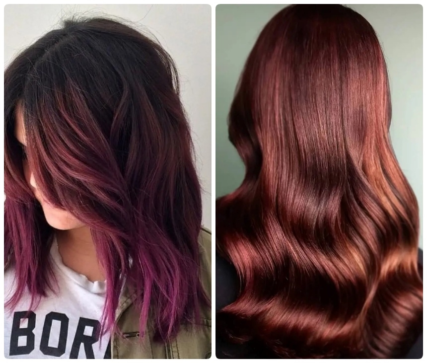 Винный — ещё один модный оттенок, который добавляет глубину и насыщенность волосам. Цвет бургунди идеально подходит для темных волос и создаёт шикарный и стильный образ.