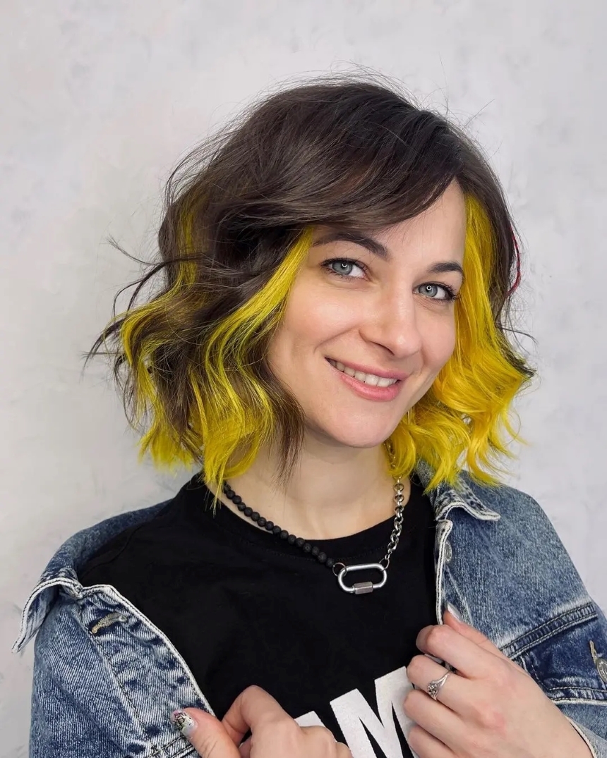 Если вы не хотите радикальных изменений, но желаете добавить немного оригинальности в свой образ, попробуйте покрасить только кончики волос или отдельные пряди в желтый цвет. Такой вариант будет хорошо сочетаться с любым цветом глаз и тоном кожи.