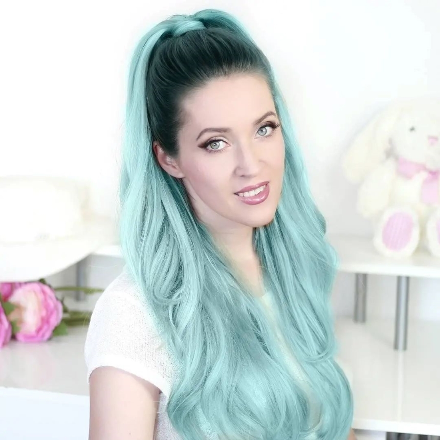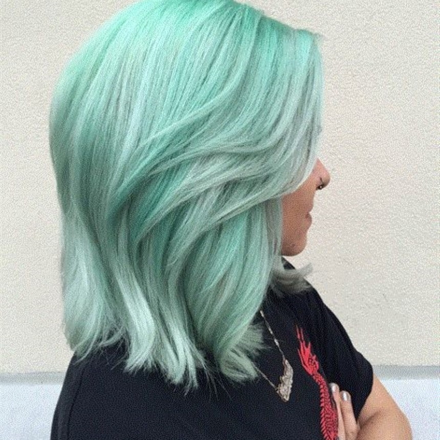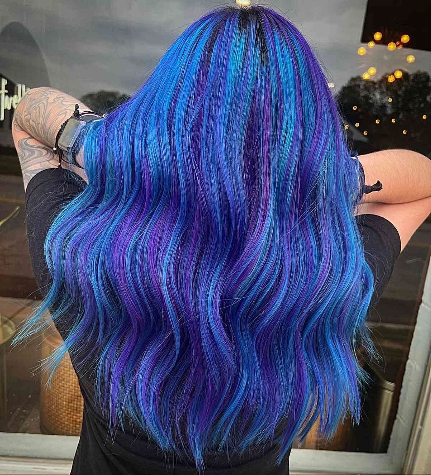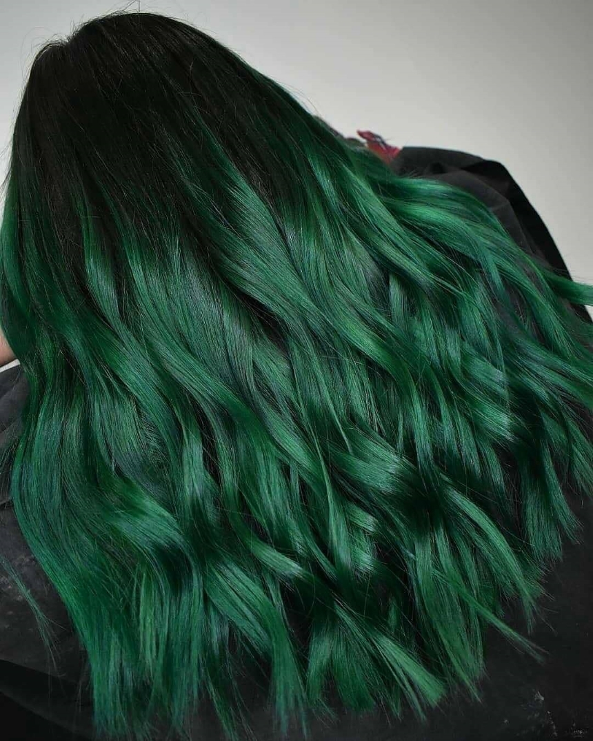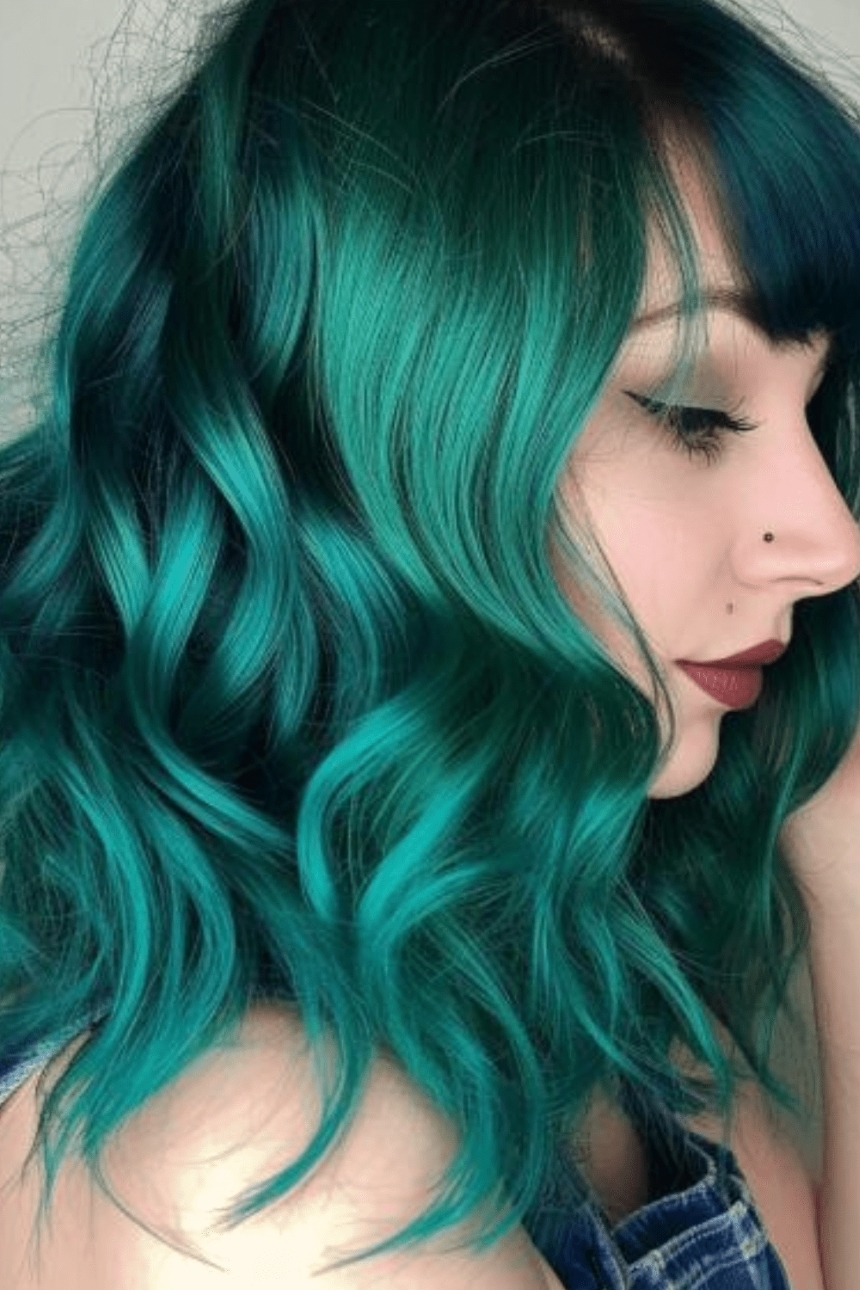 Сочетание синего и зеленого оттенков позволяет получить разнообразные прядки в волосах, от светлого аквамарина до глубокого изумруда.