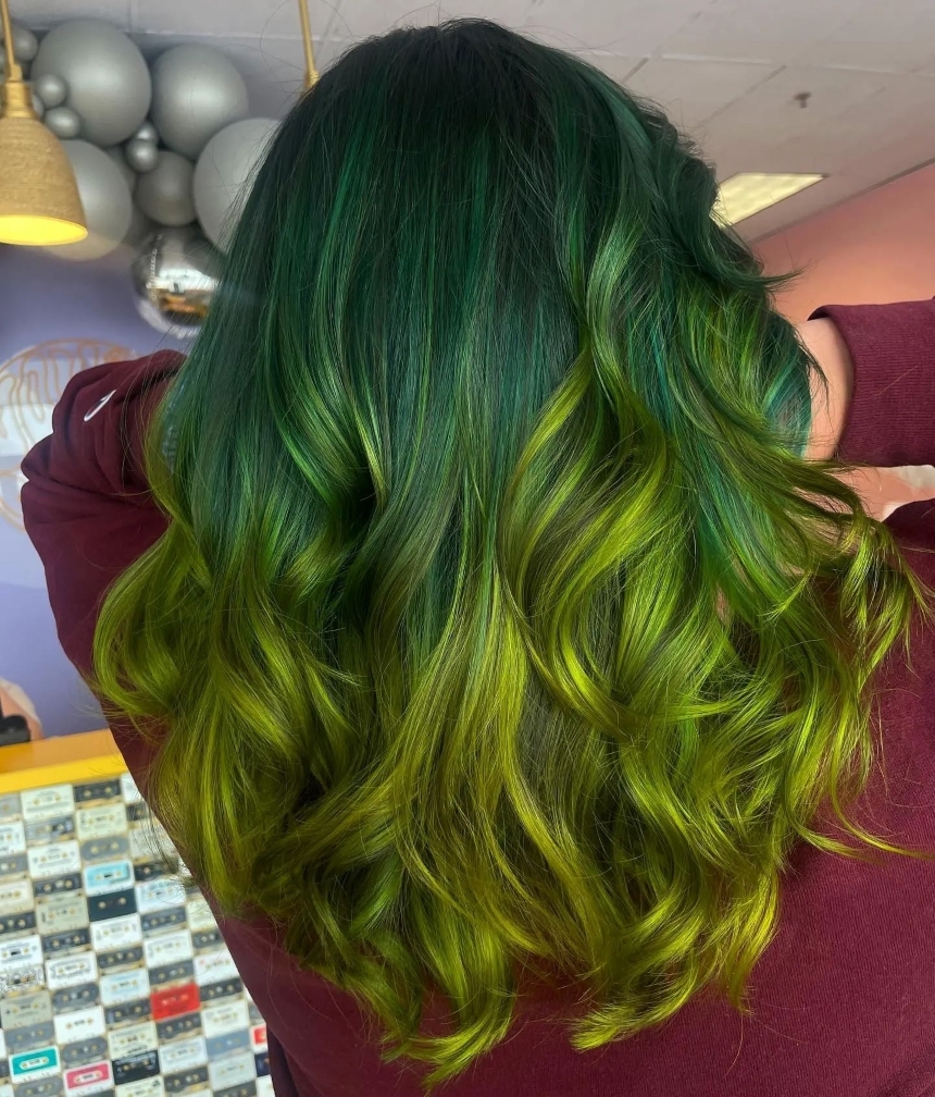 Очень интересный и оригинальный цвет волос, который напоминает о природе и свежей листве.