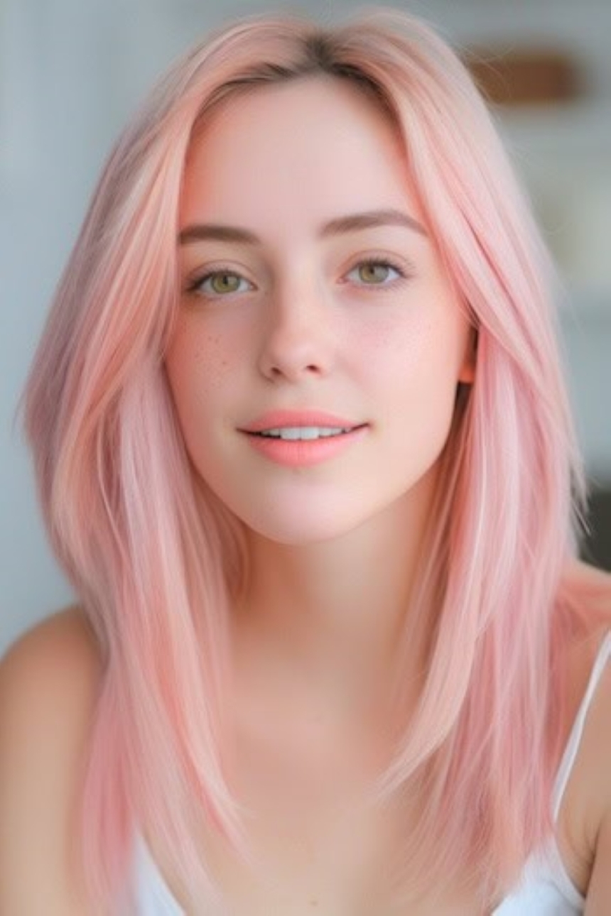 Нежный оттенок розового, который напоминает о клубнике, лете и теплых деньках. На коротких волосах такое окрашивание выглядит игриво, а на длинных очень романтично и женственно.