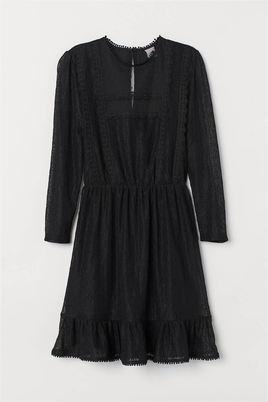 Маленькое черное платье обязательно должно быть в гардеробе каждой женщины! Для разнообразия выберите черное платье с кружевом и круглым декольте.