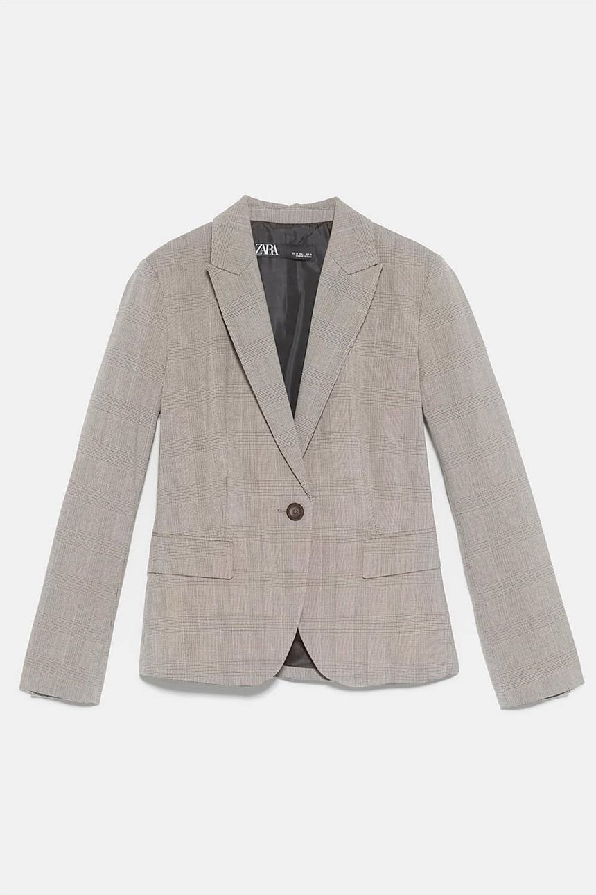 Базовый пиджак не обязательно должен быть черного цвета! В этом сезоне носите более светлые модели с принтом в клетку.