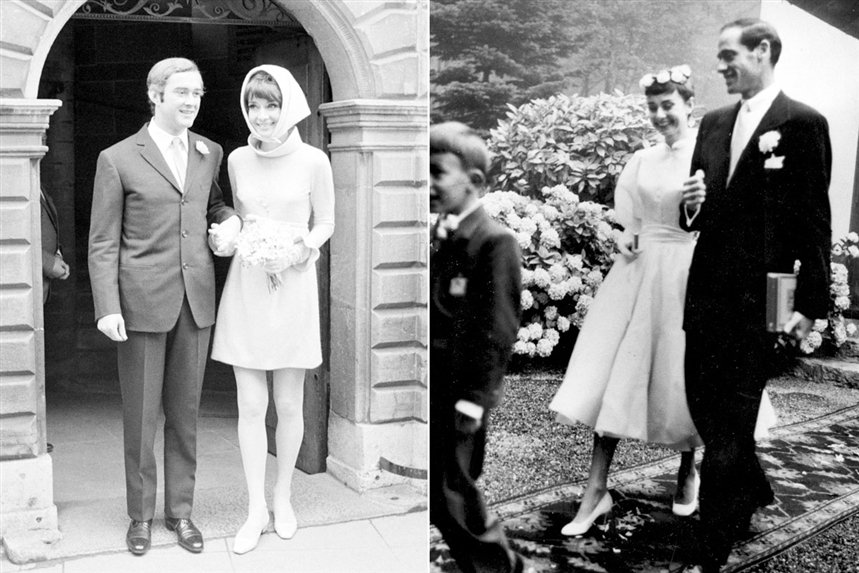 Одри Хепберн дважды продемонстрировала, что можно выглядеть шикарно в коротком свадебном платье. Слева вы видите церемонию бракосочетания с Андреа Дотти в 1969 году, а справа – свадьбу с Мелом Феррером в 1954, для которой она выбрала пышное короткое платье и венок из цветов. Одри – икона элегантности и стиля, так что смело берите с нее пример.
