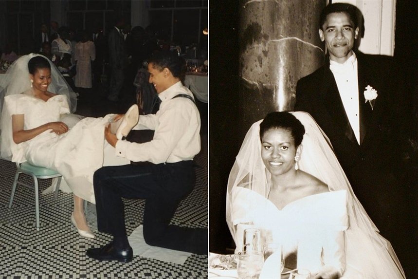 Недавно Мишель поделилась в соц. сетях фотографиями своей молодости! Самыми популярными стали снимки со свадьбы Мишель и Барака. Невеста выбрала платье с элегантным декольте, которое полностью оголяло плечи. Пышная фата идеально дополнила скромную и сдержанную прическу. Этот образ отобразил тенденции свадебной моды 1992 года.