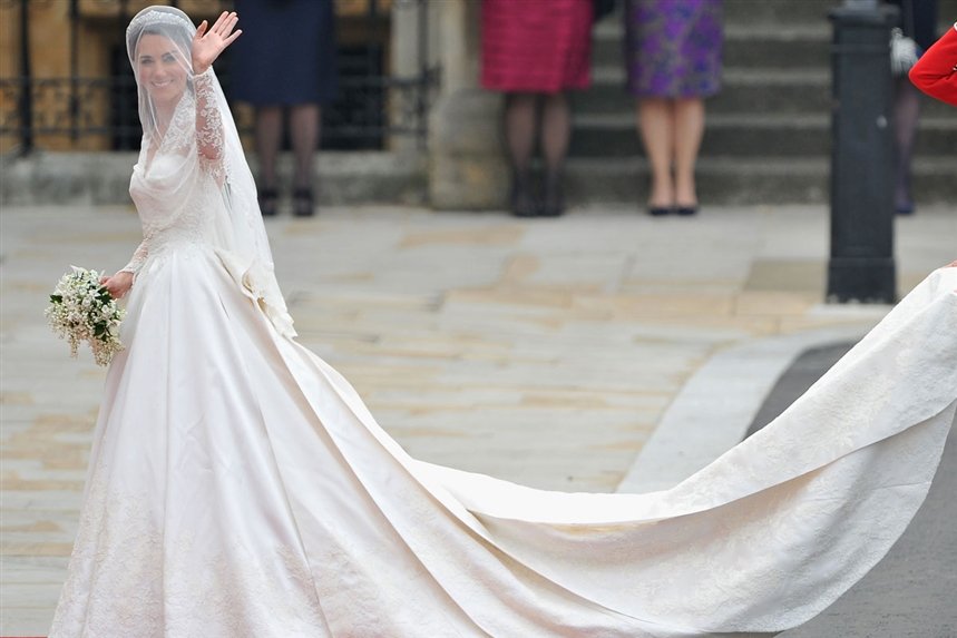 Платье Кейт Миддлтон наделало немало шума, как, впрочем, и вся церемония бракосочетания, за которой следил весь мир. Сдержанное платье с огромным шлейфом было создано волшебными руками дизайнера Сары Бартон для бренда Alexander McQueen. Именно в этом наряде Кейт стала герцогиней Кембриджской. Сейчас она является иконой стиля для миллионов женщин по всему миру.