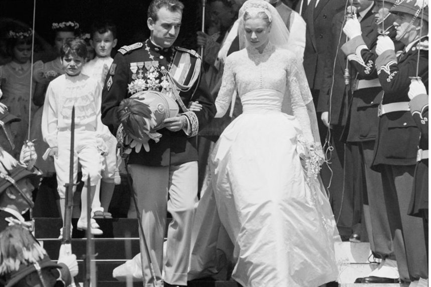 В 1956 году Грейс Келли вышла замуж за Короля Монако. Для церемонии актриса выбрала платье от дизайнера Helen Rose, которое вошло в историю. Свадебный образ Грейс Келли стал по-настоящему незабываемым.