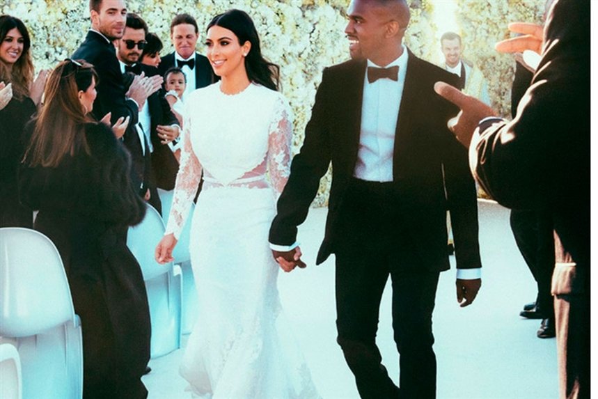 Свадьба Ким Кардашьян и Канье Уэста обошлась в 150 миллионов долларов. Эта фотография со свадьбы собрала огромное количество лайков в инстаграме. Прекрасное платье для Ким создал бренд Givenchy.