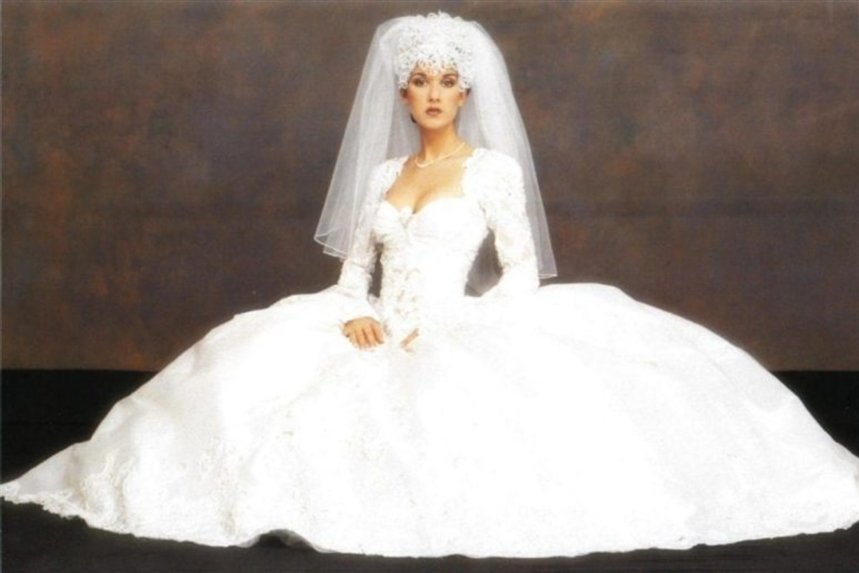 Селин Дион вышла за Рене Анжелила (музыканта и продюсера) в 1994 году. На церемонию она выбрала платье в своем любимом стиле: барокковый дизайн, множество страз и гипюра. Сейчас это платье считают одним из самых неожиданных и оригинальных в истории звездных свадеб.