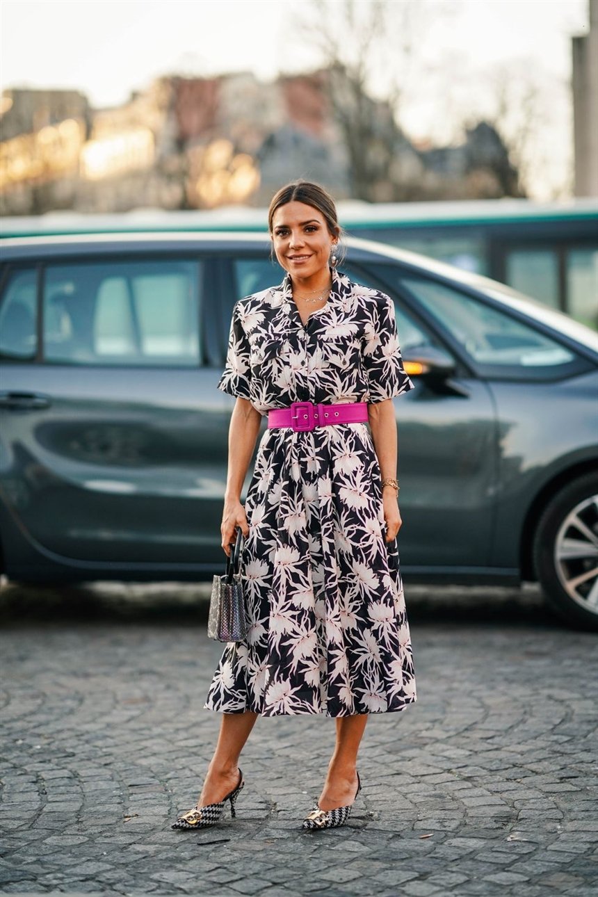 У вас есть платье с принтом, от которого вы уже устали? Добавьте в образ цветной пояс и увидите, как преобразится ваше платье! Можете сочетать платье с туфлями, босоножками или кедами. Выберите ту обувь, в которой вы будете чувствовать себя комфортно на работе.