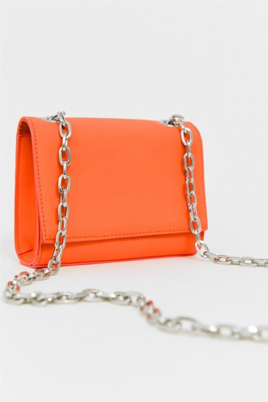 Вы решитесь на сумку неонового цвета? Только посмотрите на удачное сочетание формы, цвета и железной цепочки. Прекрасно подойдет для весеннего или летнего образа!