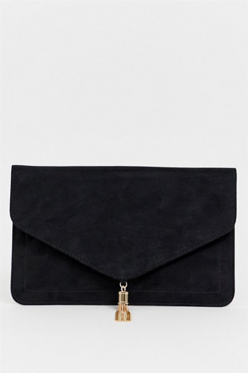 Черный замшевый клатч – это вариант, который идеально сочетается практически с каждым образом. Сдержанная и универсальная модель.