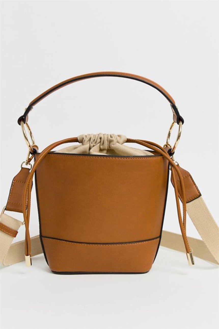 Эта модель объединяет комфорт и стиль. В ней сочетается коричневая кожа и тканевый ремешок бежевого цвета. Кроме того, не может не удивлять верхушка, затянутая, как мешок. Ищите необычные сочетания, чтобы выглядеть стильно этой весной.
