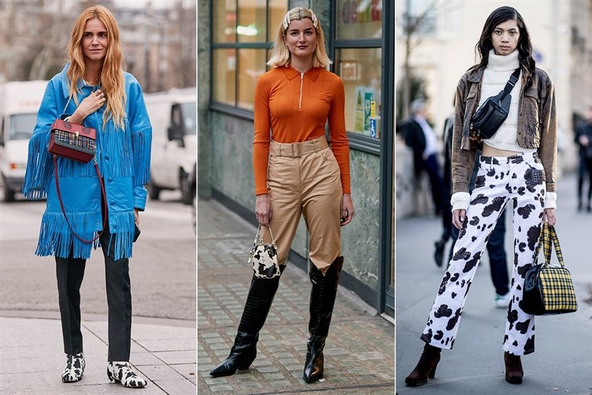 В этом сезоне на смену леопардовому принту приходит принт коровы. Вы можете рискнуть и выбрать штаны с таким принтом. Однако можно ограничиться сумками, туфлями или поясом с принтом коровы. Не переживайте, принты леопарда, тигра или зебры все еще останутся трендовыми. Просто этой весной главным триумфатором будет именно принт коровы.