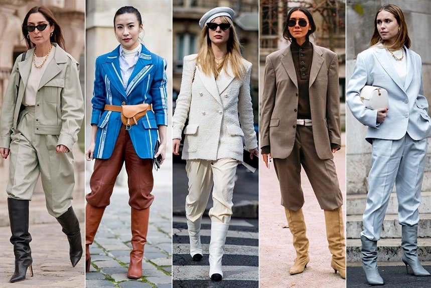 Одна из самых популярных тенденций Нью-Йорка, Милана, Лондона и Парижа. Нежелательно сочетать костюм с мокасинами, туфлями или босоножками. Ботинки с высоким или средним голенищем - идеальный вариант. Пора вспомнить, как вы заправляли штаны в голенище ботинок. Только сейчас облегающие штаны заменяются широкими брюками.