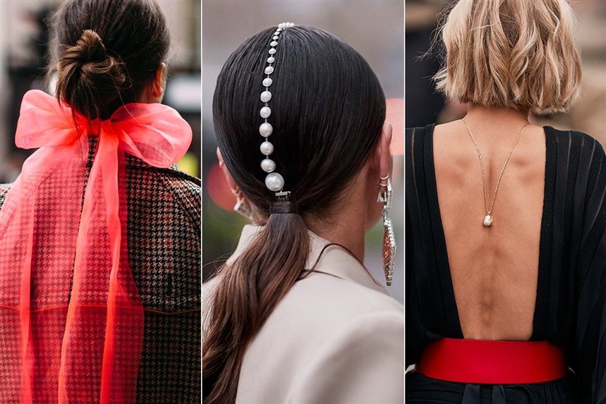 Лучшие фото получаются со спины. Жемчужины, которые обрамляют прическу, подвеска, которая спадает на спину из-за глубокого декольте. Это один из популярных приемов знаменитостей и фешн-блогеров, чтобы привлечь внимание фотокамер. Это доказательство того, что даже самый простой образ может полностью измениться из-за неожиданной детали на спине или прическе. Используйте оригинальные аксессуары и украшайте ими спину.