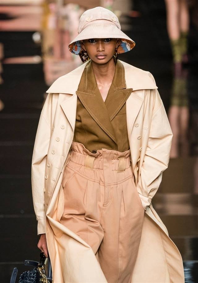 Если вы предпочитаете классический стиль, то вашим вдохновением должна стать весенняя коллекция дома моды Fendi. Гамма нейтральных тонов – это ключевое для весенних образов. Итальянский бренд одежды увидел образы весны в стиле гламурного городского сафари. Только посмотрите на штаны, что на модели. В этом сезоне очень популярны штаны на высокой талии с высоким поясом и небольшой плиссировкой.