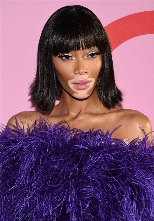 Мы в восторге от стрижки Винни Харлоу. Темный цвет волос, средняя длина, объем, густая и ровная челка и кончики, подкрученные наружу. Если у вас продолговатое лицо, то такая челка визуально уменьшит лоб, смягчит ваши черты лица.