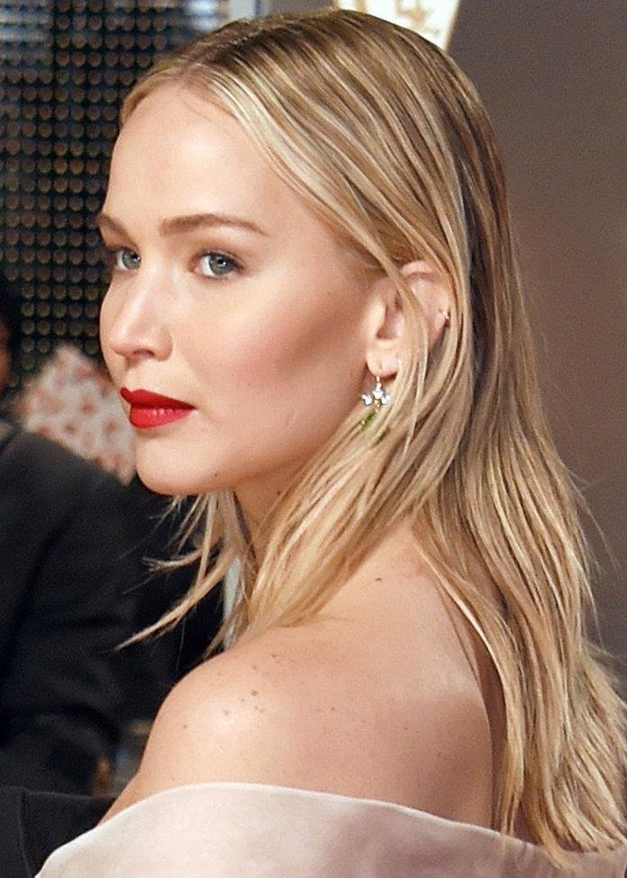 Чтобы повторить элегантный стиль и прическу Дженнифер Лоуренс, нужно следовать двум советам. Выровняйте все волосы и уложите пряди за ушами по обе стороны. После этого вы можете использовать спрей для увлажнения и блеска.