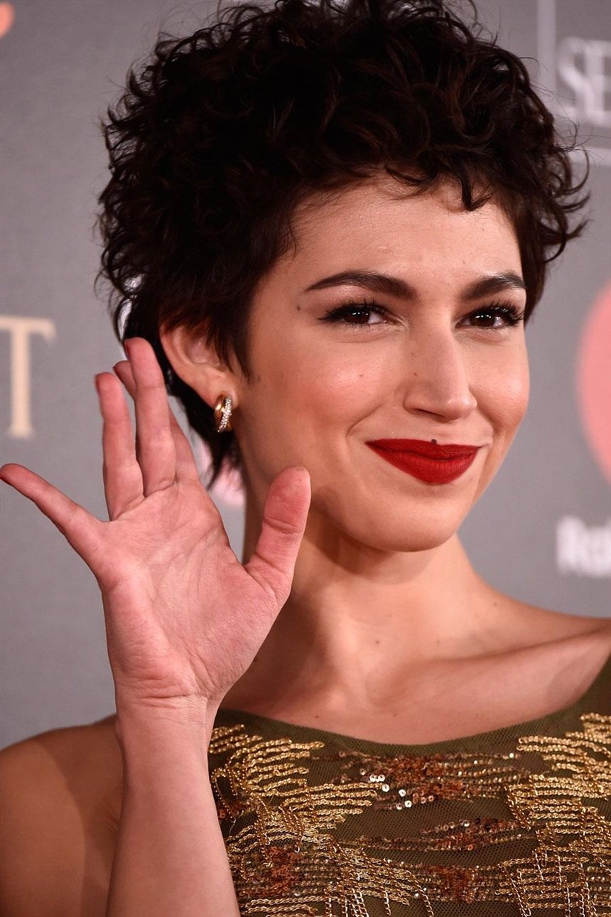 Стиль 80-х годов сейчас в тренде! Вот почему Урсула Корберо предпочла сделать свои короткие волосы полностью кудрявыми. Такая прическа в стиле ретро однозначно подойдет для тематической вечеринки.