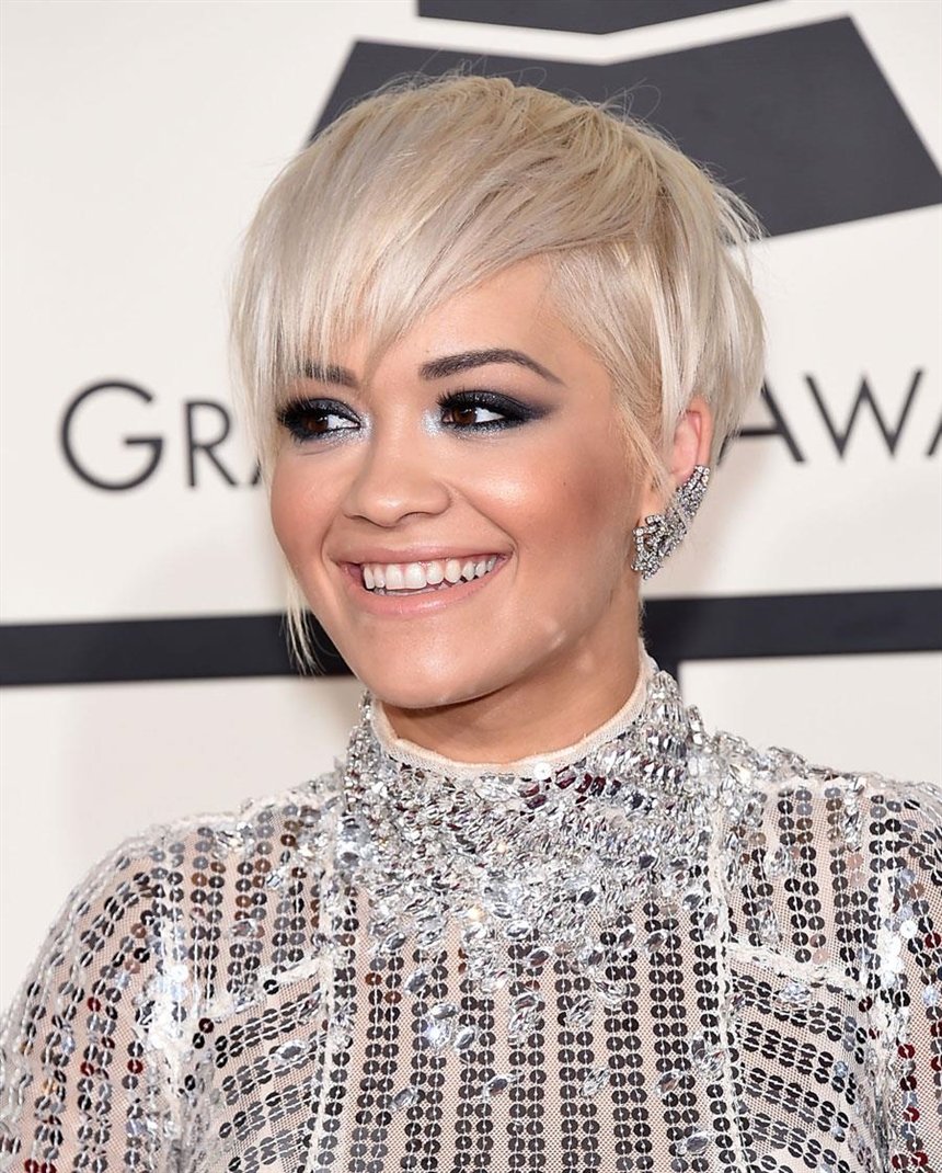 Если у вас стрижка пикси, то попробуйте повторить укладку Риты Оры: добавьте объема на макушке, уложите челку на лоб и придайте волосам небрежного эффекта. Стильные аксессуары идеально дополнят образ.