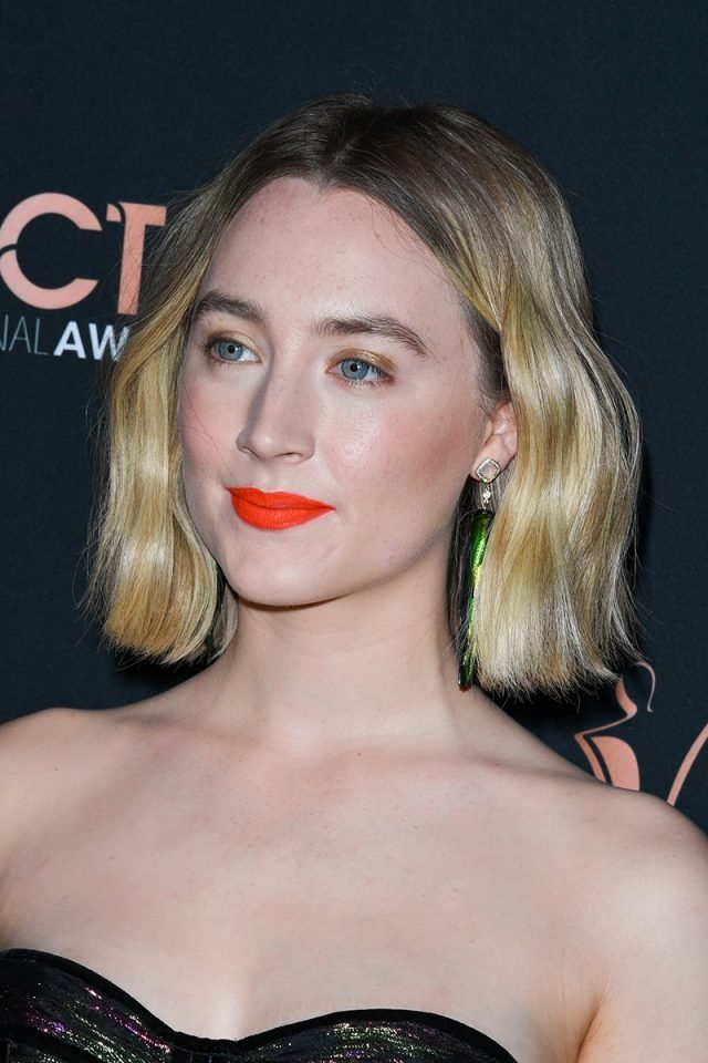 Главная героиня фильма "Маленькие женщины" тоже любит поиграть с контрастностью. Она не побоялась сделать широкую полосу темных корней и оставить остальные волосы в цвете блонд. Актриса обожает этот цвет и практически никогда с ним не расстается. Ну а стрижка боб с легкими кудрями довершает образ.
