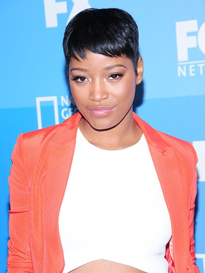 Кеке ПалмерДа, это очень короткая прическа, но объемная макушка и длинные бока делают ее невероятно текстурной. Высушите волосы феном, зачесывая их пальцами наперед и выровняйте плойкой. Нанесите немного воска, чтобы выделить отдельные пряди на челке.