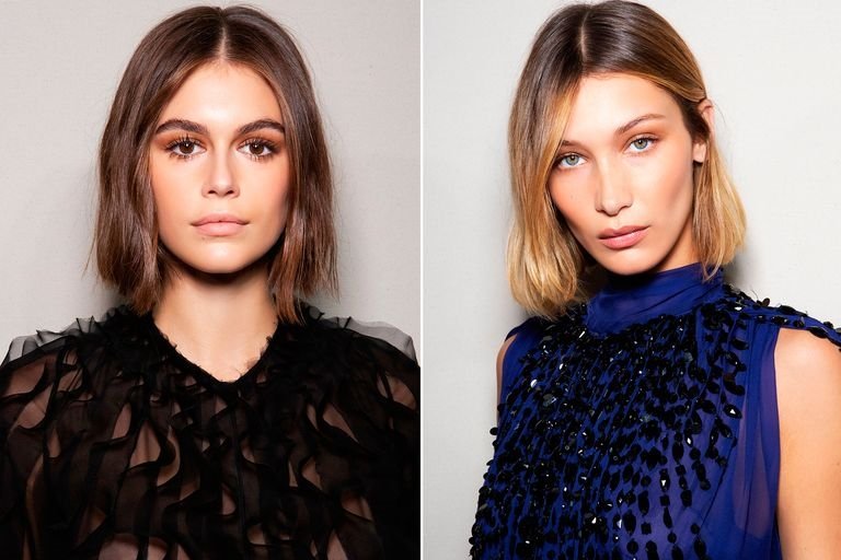 Лонг боб (стрижка до плеч) без каскада и челки тоже будет очень востребованной стрижкой в этом году. Вдохновляйтесь образами Кайи Гербер и Беллы Хадид. Первый вариант – стрижка шоколадного цвета с переливами. Второй вариант – лонг боб с градацией от шоколадного, до золотистого цвета на кончиках.