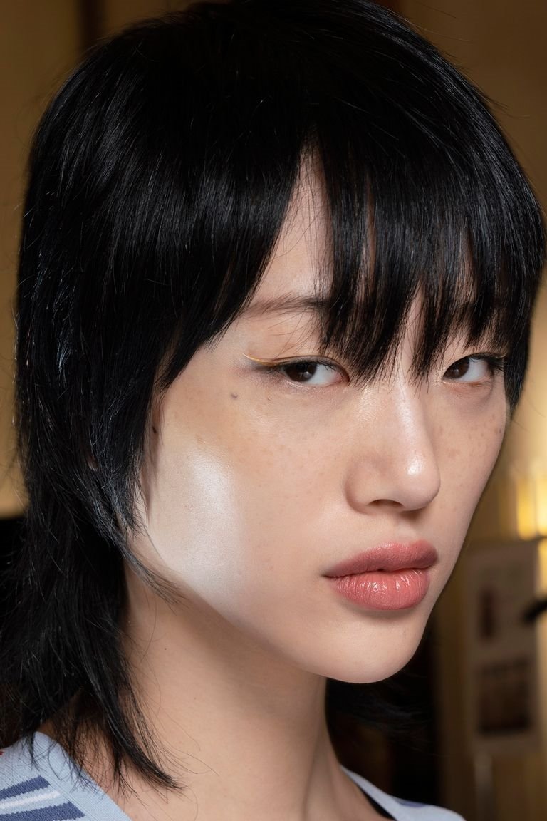 Еще одна прическа от Acne. Ее просто обожает звезда сериала "Бумажный дом" Урсула Корберо. Короткая челка и удлиненные волосы на затылке подчеркнут черты лица. Идеально подходит для девушек с квадратным лицом.